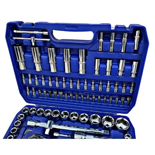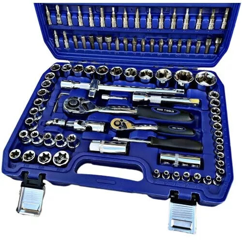 This 108 piece socket set uses the superior grip of the Super Lock profile for its shallow sockets and the standard 6 point profile for it's deep sockets. With a good selection of 1/4″ and 1/2″ drive accessories and a hand ratchet for each drive size, this set will be a good addition to anyone's tool collection.