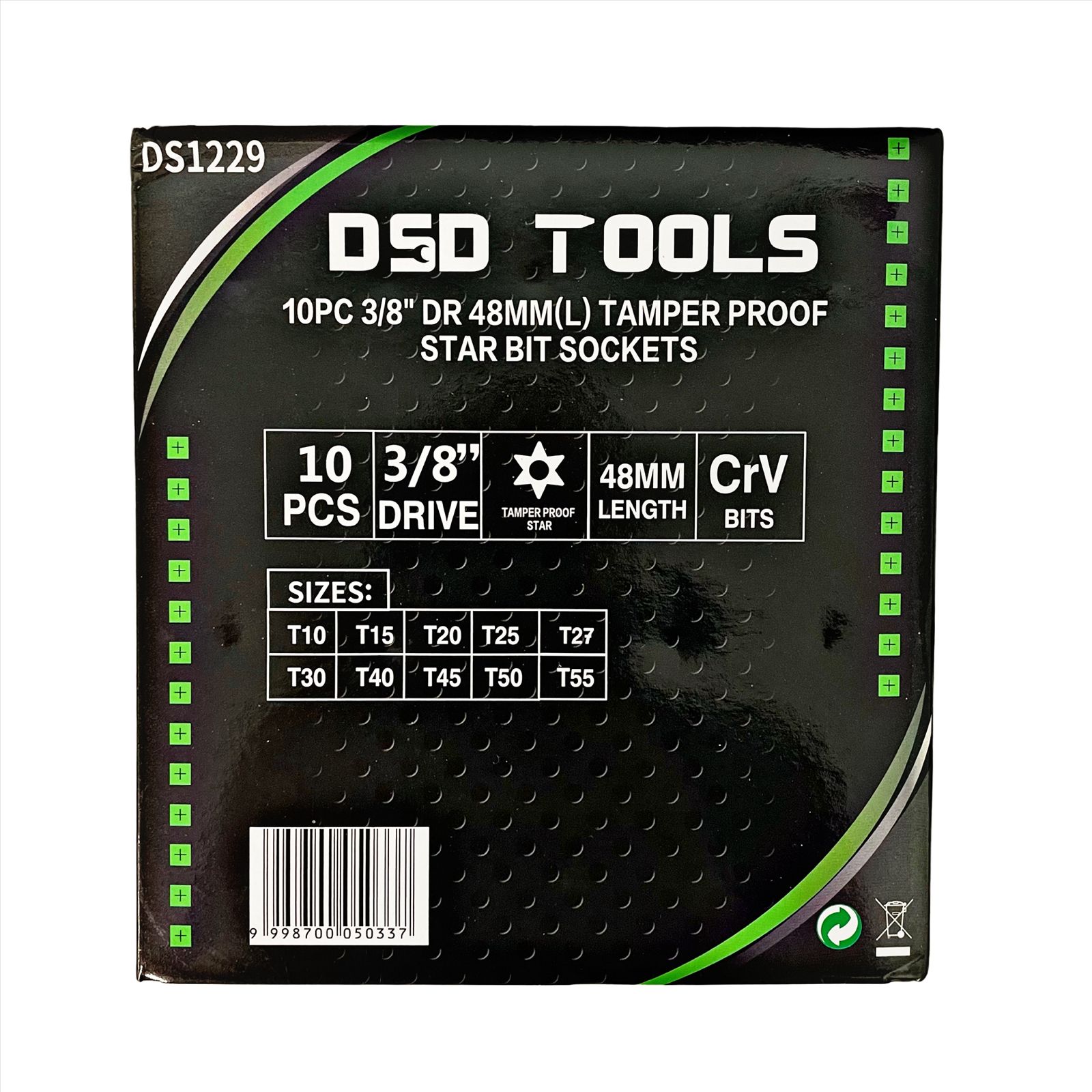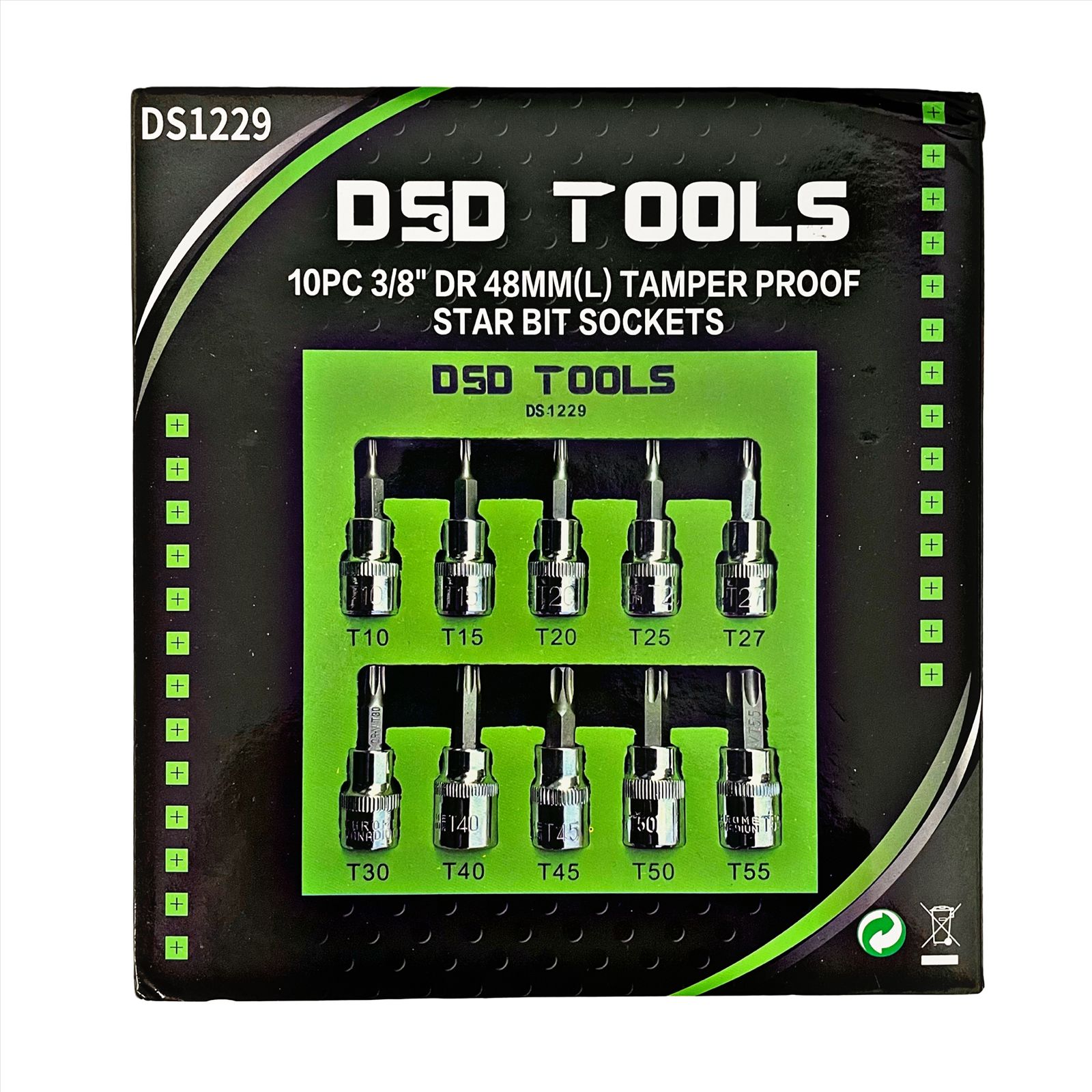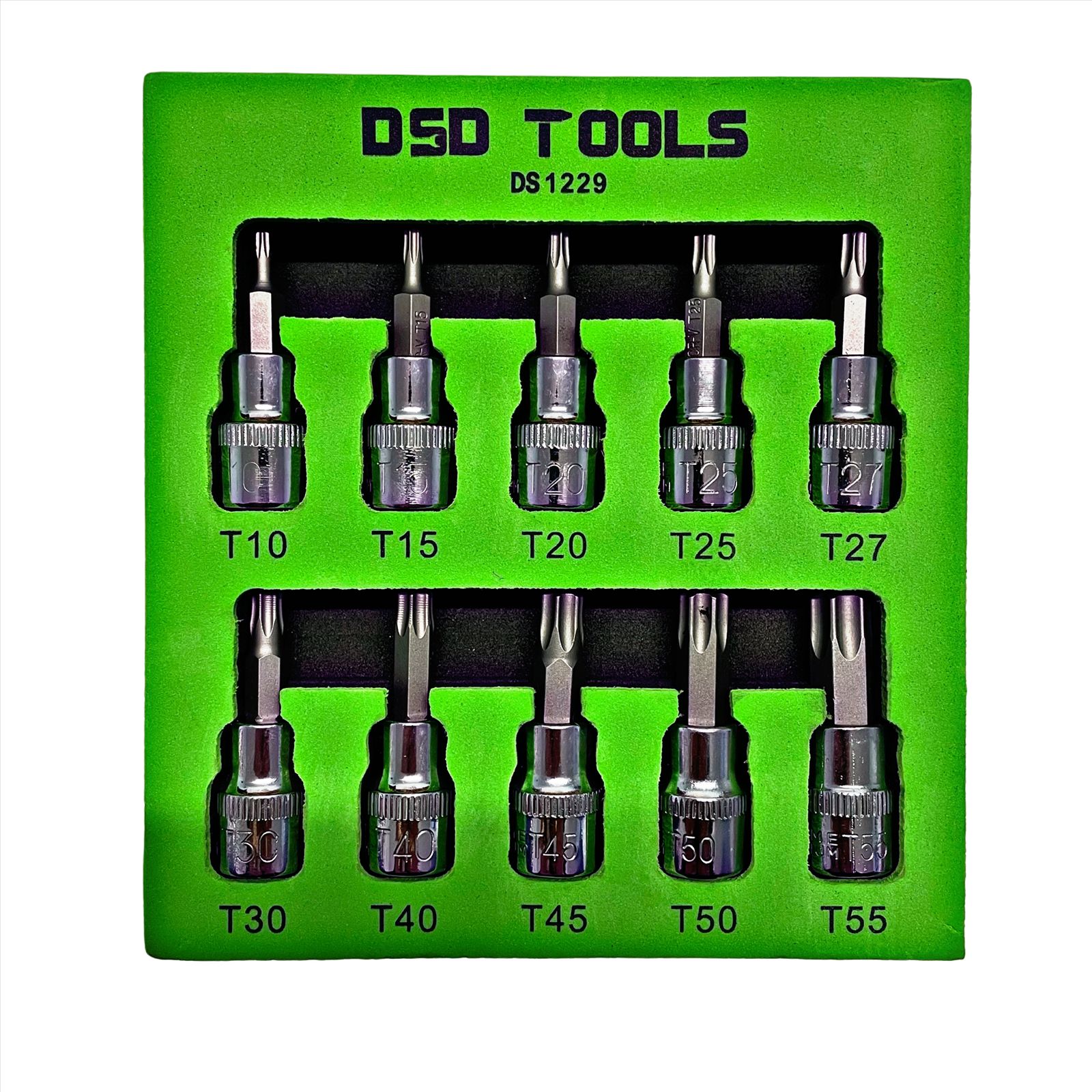 10Pc 3/8 Dr 48mm Long Tamper Proof Torx Bit Socket Set T10-T55 DS1229