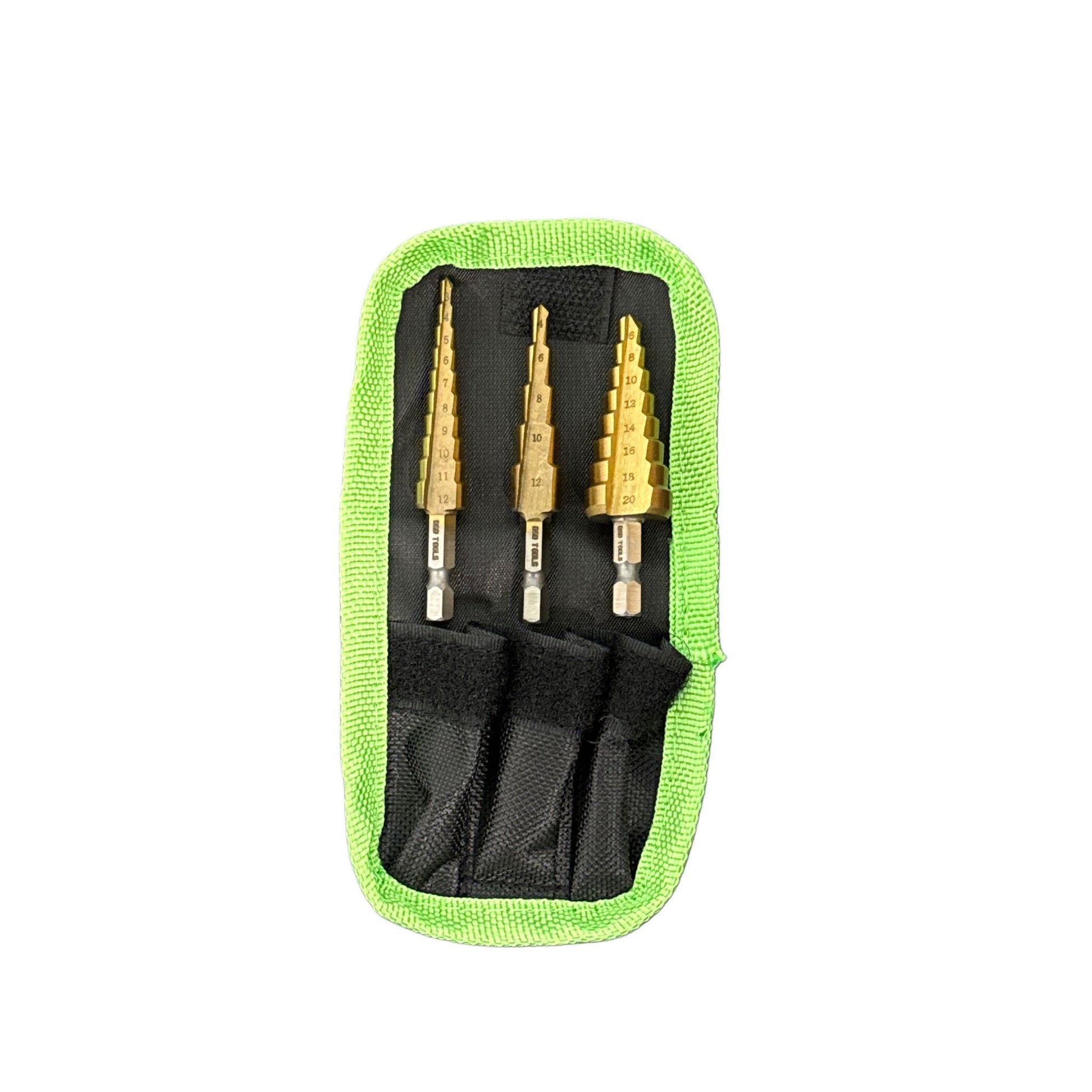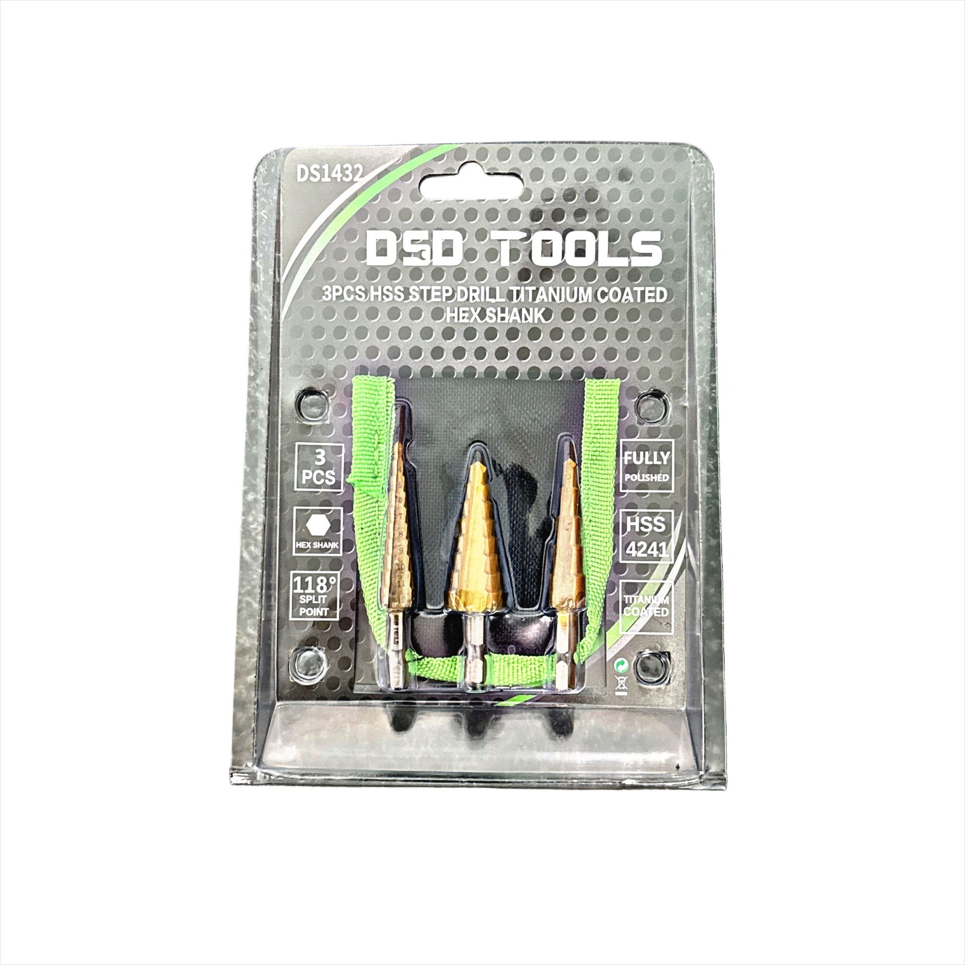 3PCS HSS STEP DRILL TITANIUM COATED HEX SHANK DS1432