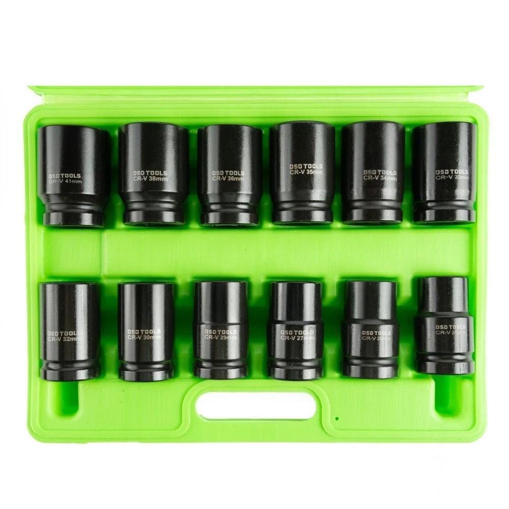 Set de 12 bucăți 1" dr, 6 puncte, set de prize metrice cu impact adânc 24 - 41 mm